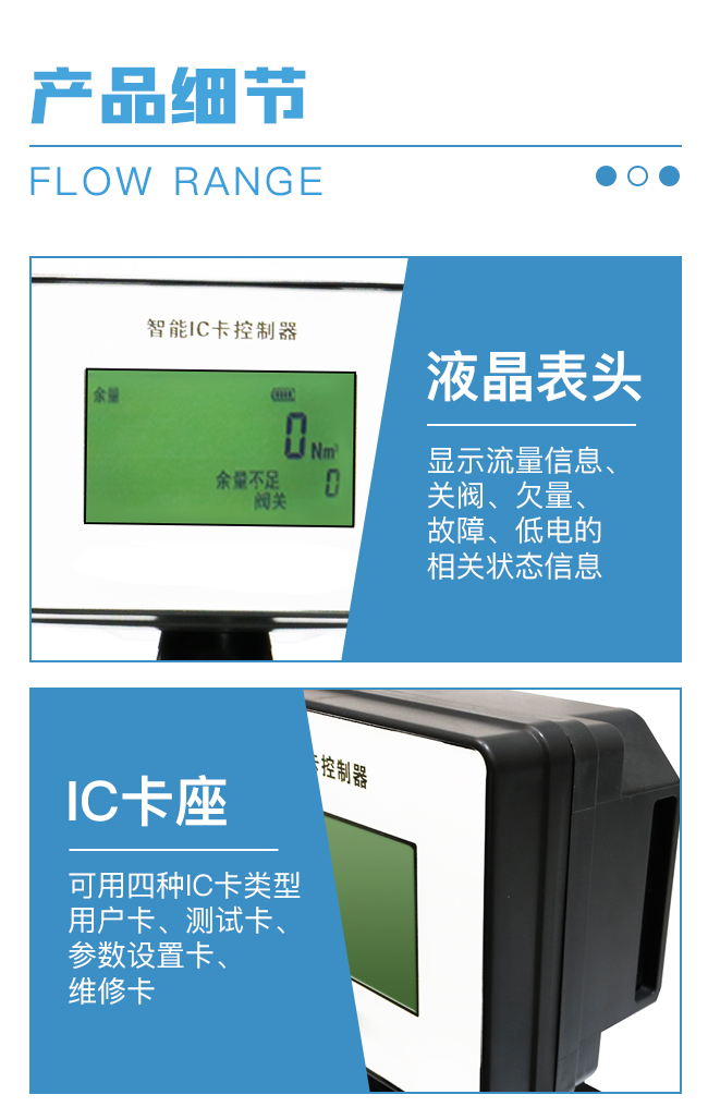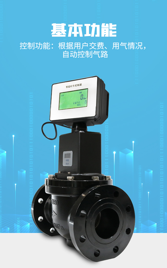 本控制器由新型微功耗電動燃氣閥門和IC卡收費系統組成。可配接具有遠傳功能的流量計(渦輪、旋進漩渦、腰輪、工業膜式表)等,實現預付費和流量控制的功能。