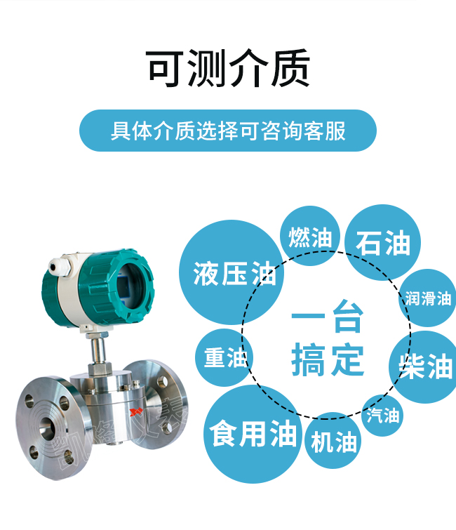 可測量介質:燃油、食用油、汽油、柴油、機油、潤滑油、液壓油、石油、重油、聚乙烯醇等液體,特別適用于高粘度液體測量。
